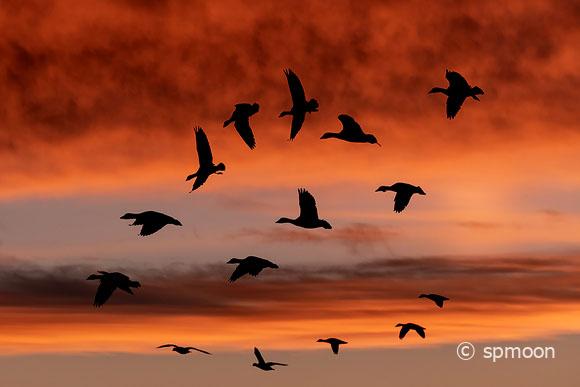 ここでのハイライトは何といっても Snow Geese(ハクガン) が日の出前に一斉に飛び立つ光景。