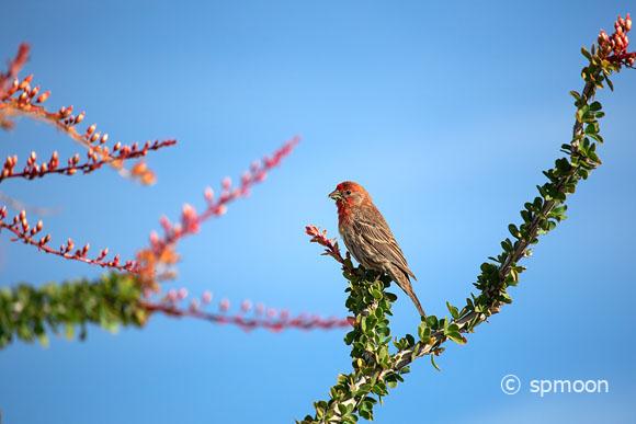 House Finch on Ocotillo flower, Anza Borrego Desert State Park