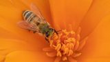 Honeybee collecting pollen from cactus flower