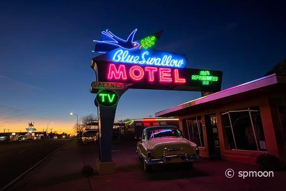 今回私が一番撮りたかったのは有名な Blue Swallow Motel(ブルー スワロー モーテル)のネオンサイン。