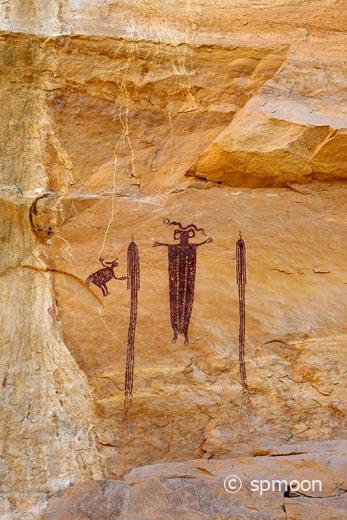 ユタ州 Green River(グリーンリバー)から西に約1時間のドライブ。壁画に到達するまでのダートロードの状態は次第に悪くなっていくので、四駆車かハイクリアランス車は必須。雨が降ったら走行不可能になるかもしれません。
